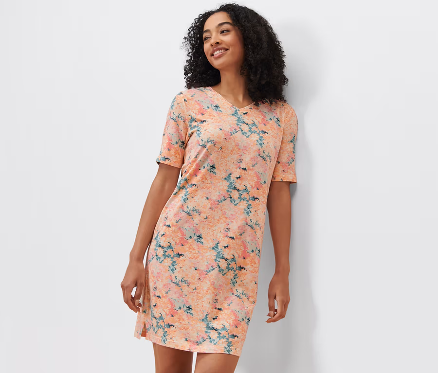 • Mit V-Ausschnitt und kurzen Ärmeln