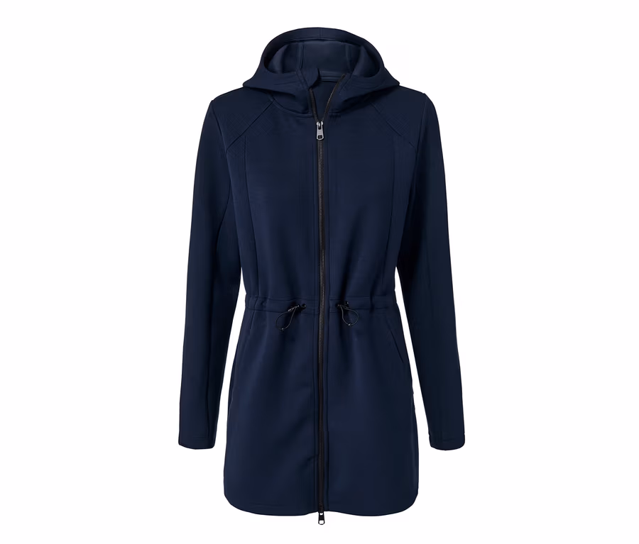 Um nach dem Workout nicht direkt auszukühlen, ist dieser Funktionsmantel mit Kapuze ideal. Das kuschelige Material ist atmungsaktiv, feuchtigkeitstransportierend und schnelltrocknend dank der DryActive Plus-Ausrüstung. Für die optimale Passform sorgt Elasthan sowie ein Tunnelzug in der Taille, der den Sitz reguliert. Kleinere Gegenstände lassen sich perfekt in den zwei Eingrifftaschen der sportlichen Jacke verstauen. Damit die Bewegungsfreiheit nicht eingeschränkt ist, ist der Reißverschluss in beide Richtungen zu öffnen, der zum Kinn mit einem extra Schutz versehen ist.