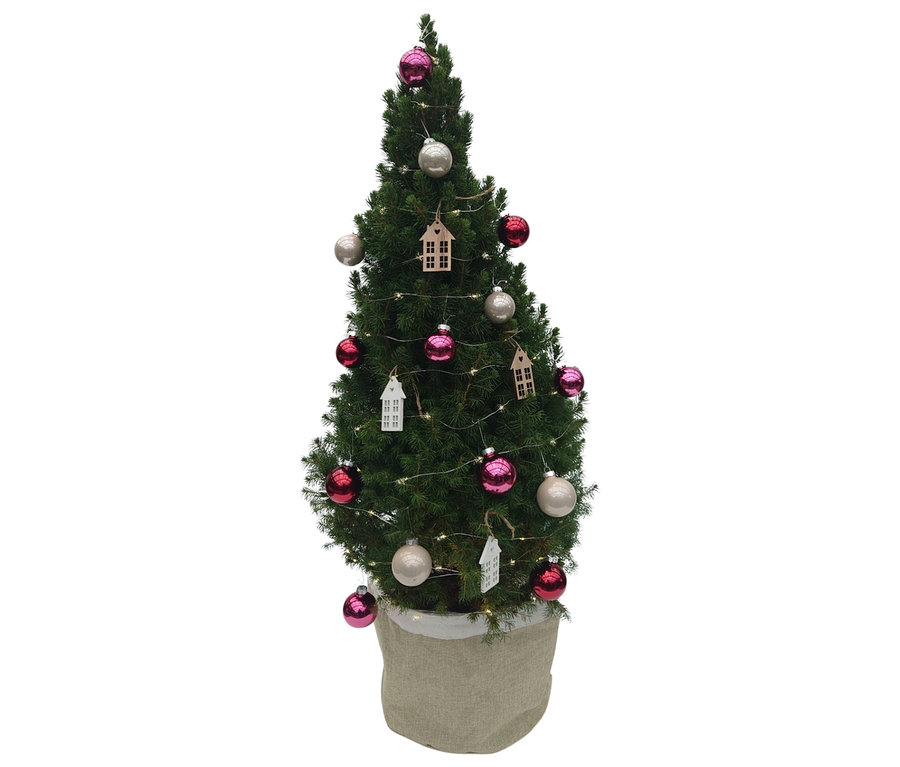 - Im Topf, inkl. Weihnachtsschmuck, Lichterkette und Jutesack