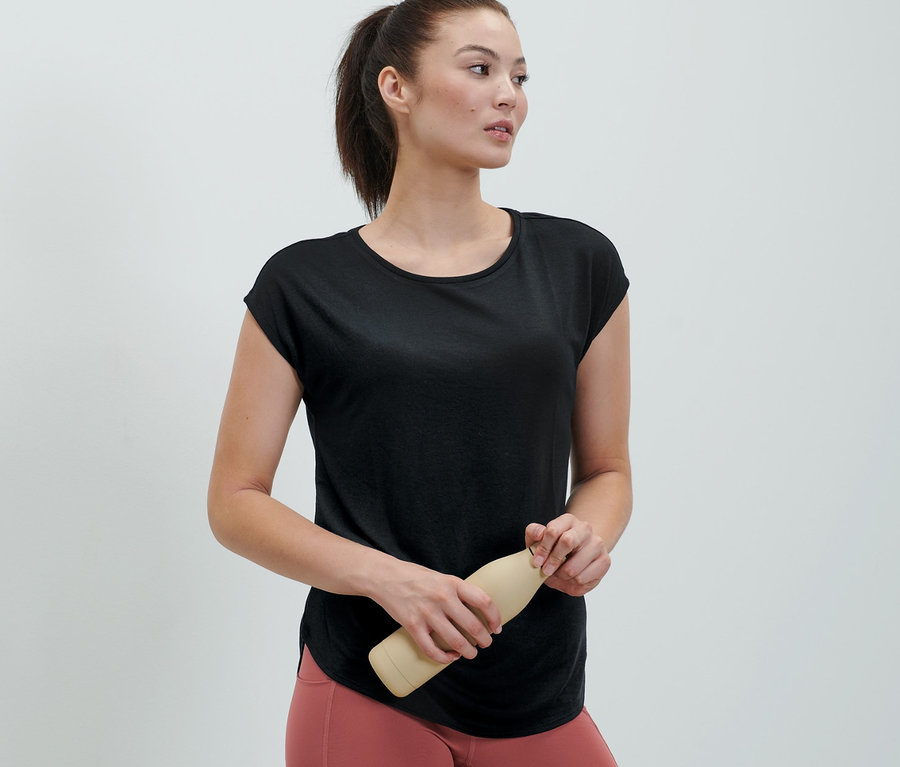- Damenshirt mit abgerundetem Saum und verlängertem Rücken
