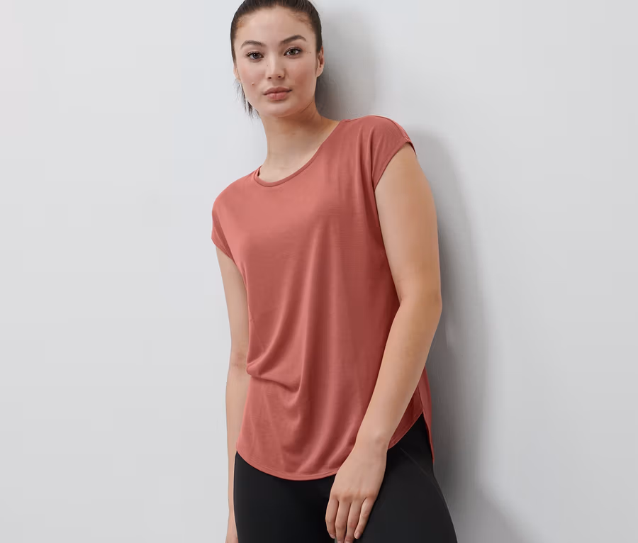 - Damenshirt mit abgerundetem Saum und verlängertem Rücken
