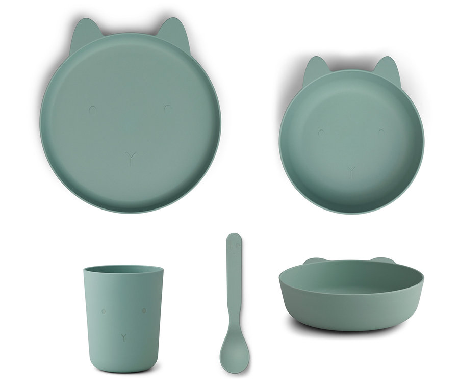- Bestehend aus Becher, Teller, Schüssel und Löffel