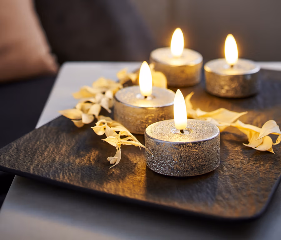 4 LED-Echtwachs-Teelichter, silberfarben