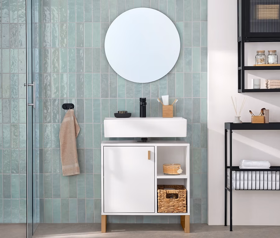 Waschbeckenunterschrank mit Tür und Seitenfach