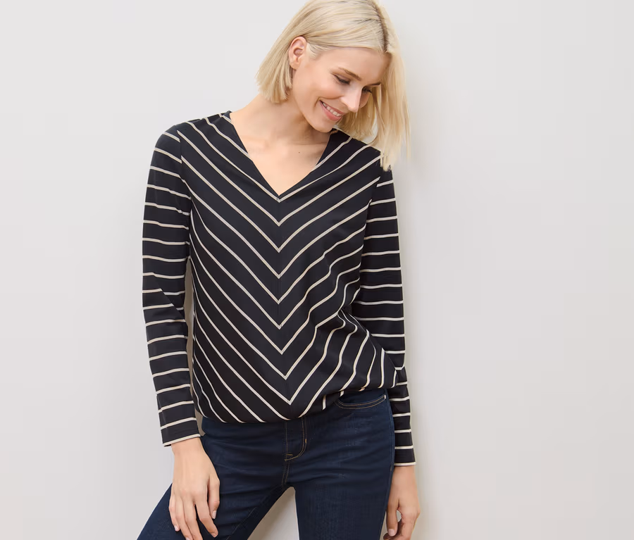 Gestreiftes Blusenshirt aus Modal-Mix