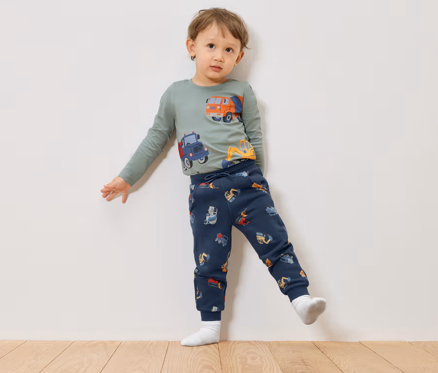 Kinder Jogginghose, navy mit graugrünen Bündchen