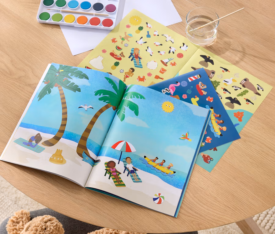 - Lass der Fantasie freien Lauf und erschaffe mit 400 abwechslungsreichen Stickern eigene Szenen rund um Meer, Strand und Ozean. Ob spielende Kinder, Sonnenschirme oder Delfine: es gibt viel zu kleben und zu entdecken.