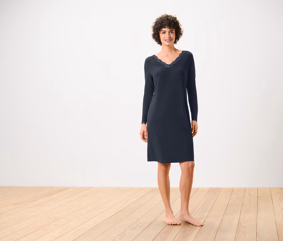 Nachthemd mit Spitzenbesatz, dunkelblau