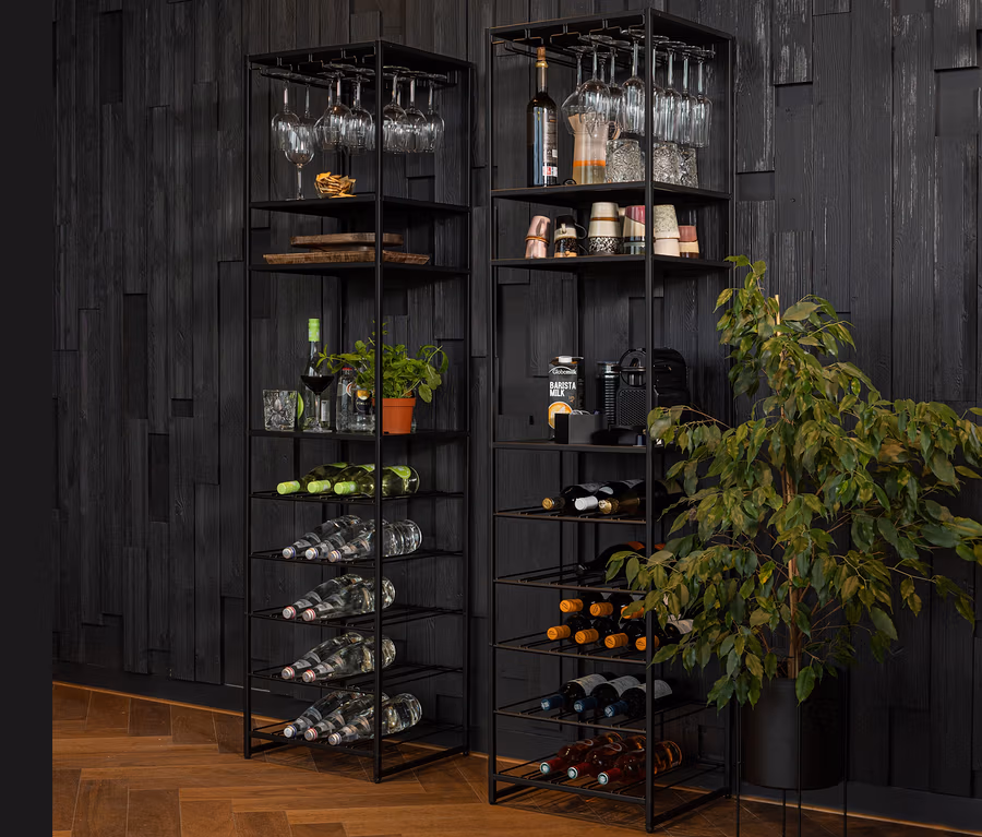 - Platz für bis zu 25 Flaschen und 4 Glasleisten