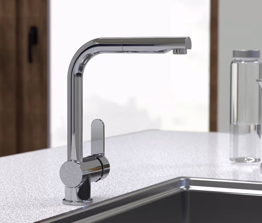 Diese Spültischarmatur zeichnet sich durch Flexibilität und Präzision aus: Der hochwertige Auslauf hat mit seinem 360°-Schwenkbereich einen erweiterten Aktionsradius zum bequemen Arbeiten und ist ausziehbar zum komfortablen Befüllen auch hoher Gefäße. Dank Schnellmontage-Set mit flexiblen Anschlussschläuchen und leicht verständlicher Anleitung ist auch die Montage des Einhebelmischers denkbar einfach.