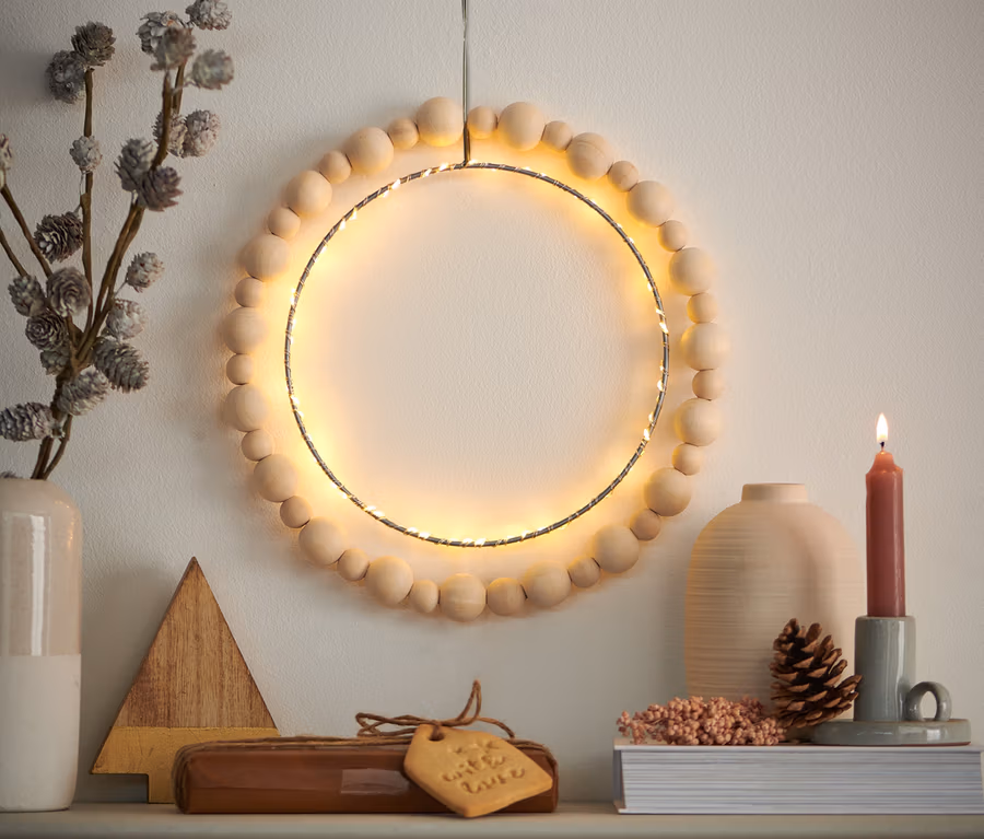 • Innerer Ring mit Mikro-Lichterkette mit 50 LEDs ‒ warmweiß leuchtend