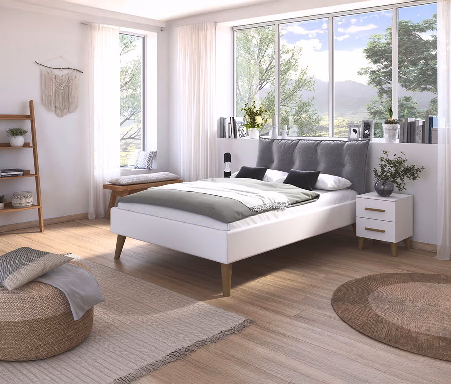 - Modernes Bett mit bequem gepolstertem Bettkopfteil in Hellgrau