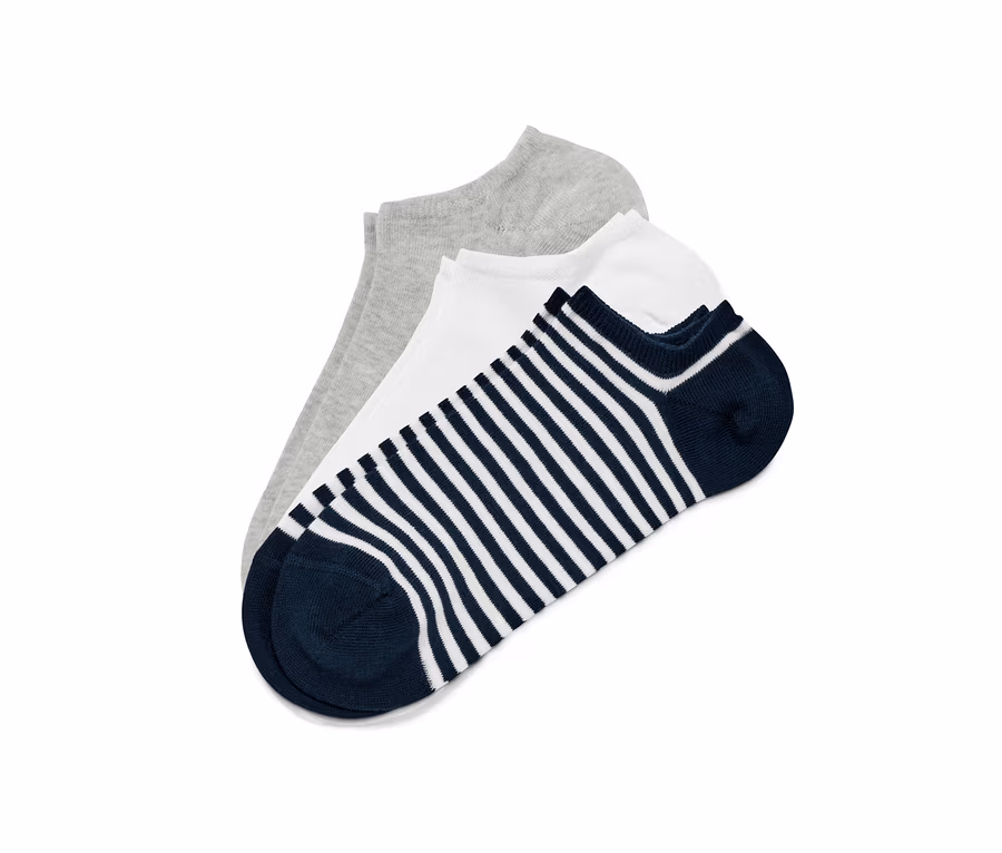 - 1x dunkelblau-weiß, 1x weiß, 1x hellgrau meliert