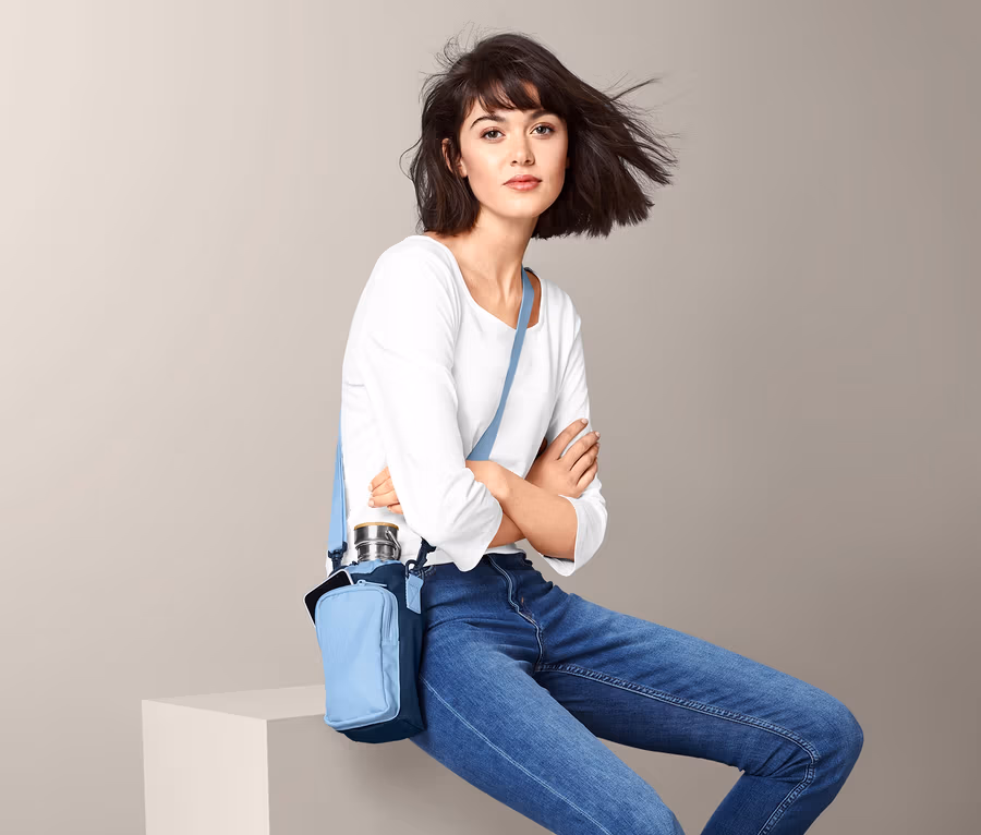 - Mit längenverstellbarem, abnehmbarem Tragegurt