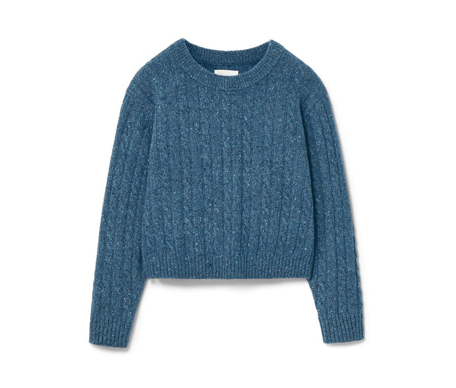 NAH/STUDIO Zopfmuster-Pullover | recycelter Cashmere und Merinowolle, blue melange