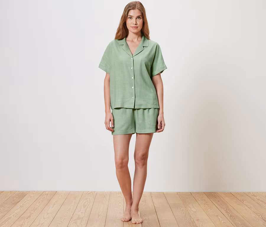 - Kurzer Damen-Schlafanzug in leichtem Viskose-Leinen-Mix