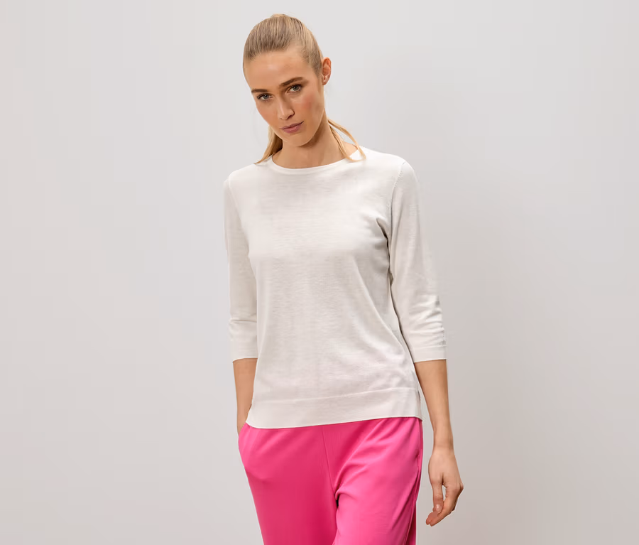 Feinstrickpullover mit Seide, creme