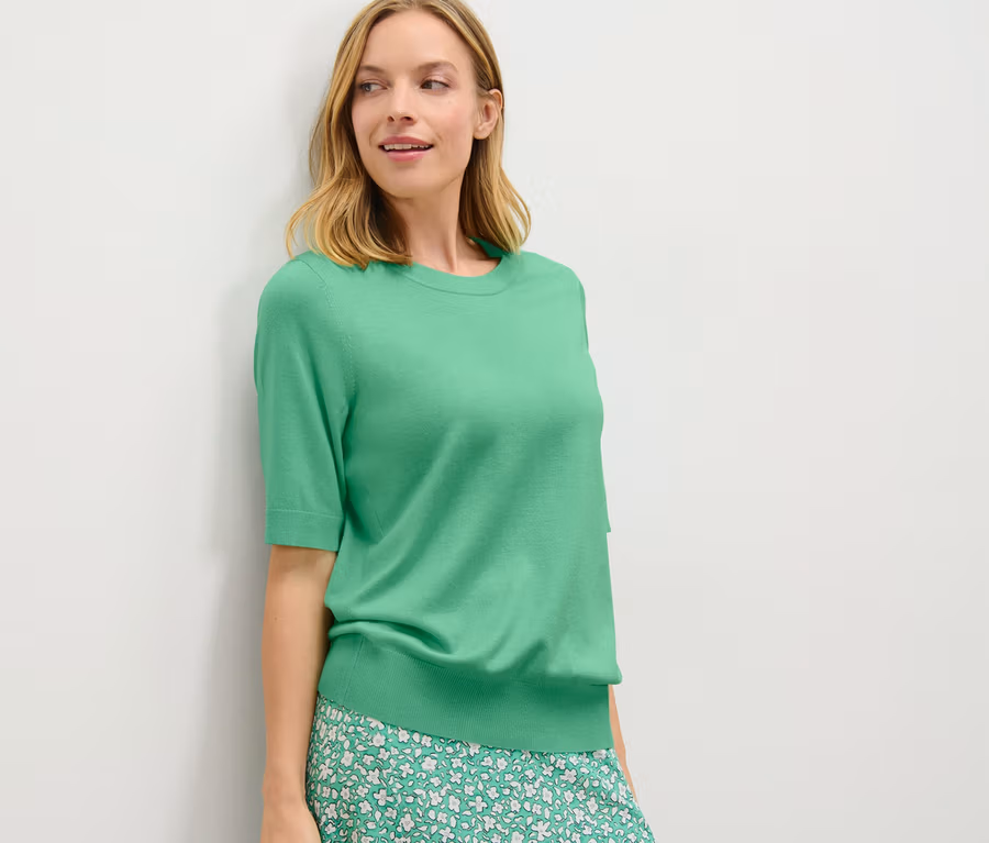 - Dieser Feinstrickpullover beinhaltet Fasern aus nachhaltigem Holz.