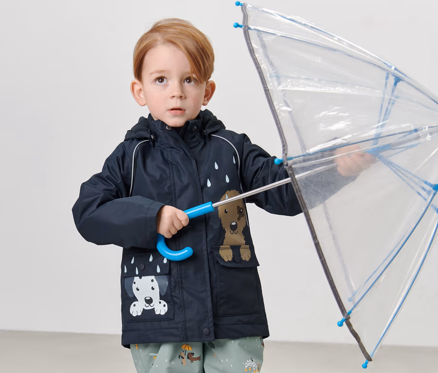• Abknöpfbare Kapuze und weiche Rippbündchen