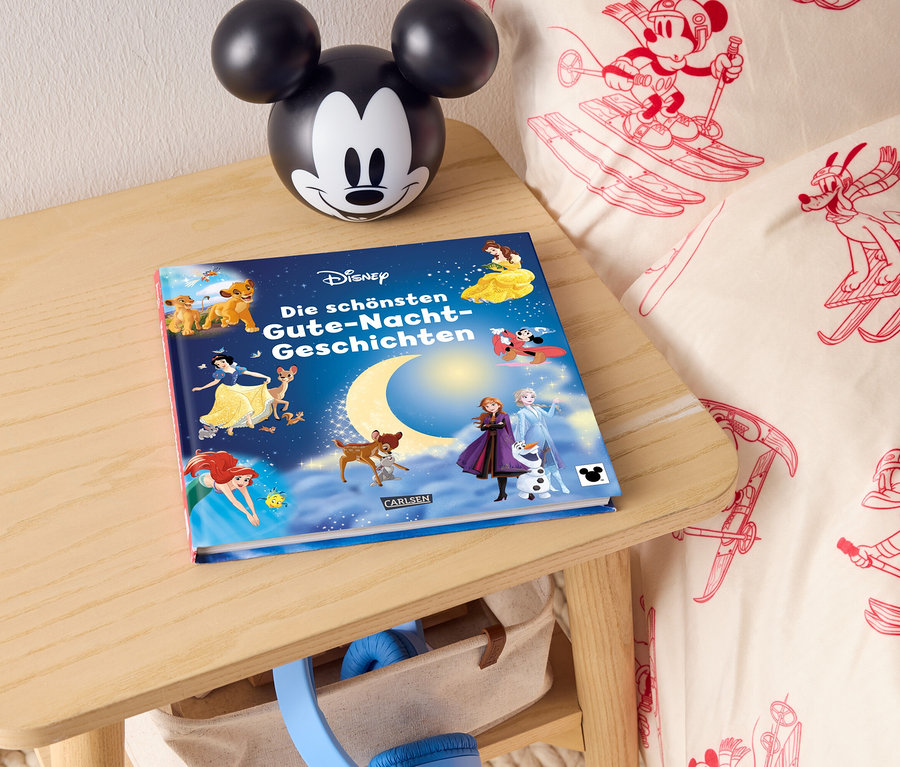 - Dieses Gute-Nacht-Buch enthält acht Geschichten mit deinen liebsten Disney-Figuren. Begleite Belle mit auf ein Sternenabenteuer, genieße das Hakuna-Matata-Leben mit Simba, finde mit Arielle funkelnde Nachtlichter, erlebe eine Sternschnuppen-Nacht mit Bambi und packe mit Micky Maus Geschenke aus.