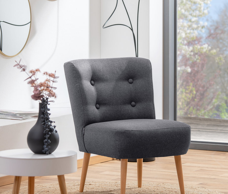 - Das dunkle Flachgewebe harmoniert perfekt mit dem Retro-Style des Sessels