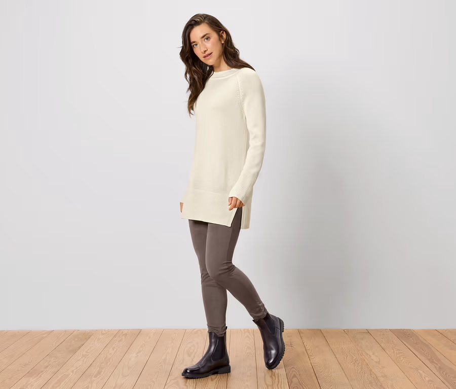 - Hochgeschlossener Rundhalsausschnitt mit Rippbündchen