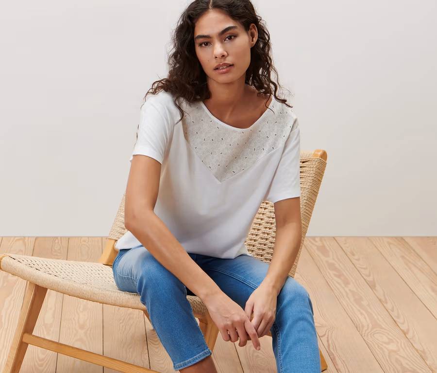 Blusenshirt mit Stickerei, weiß