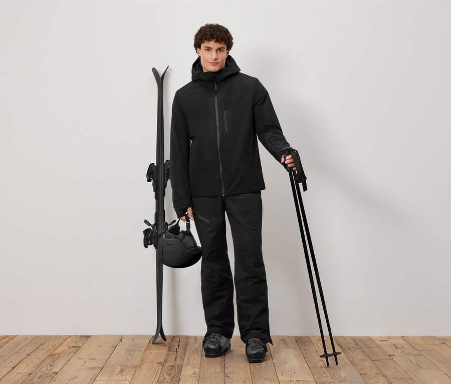 • Wasserdichter Schneefang mit rutschhemmender Gummierung und Druckknöpfen zur Weitenregulierung