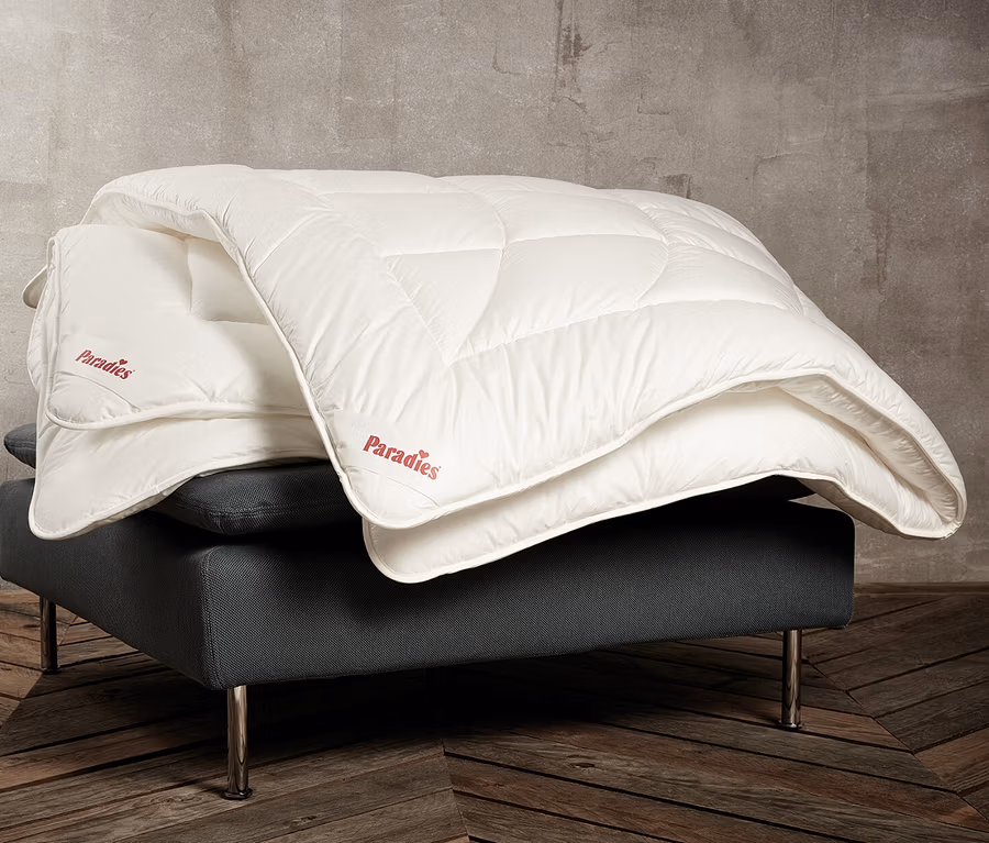 • Die Ganzjahresbettdecke ist mit der Textilfasermischung PARADIES Softcell gefüllt
