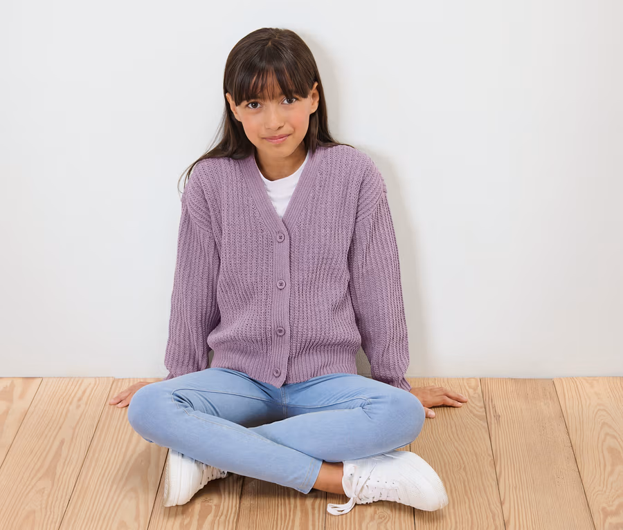 Kinder-Chenille-Strickjacke, lavendel
