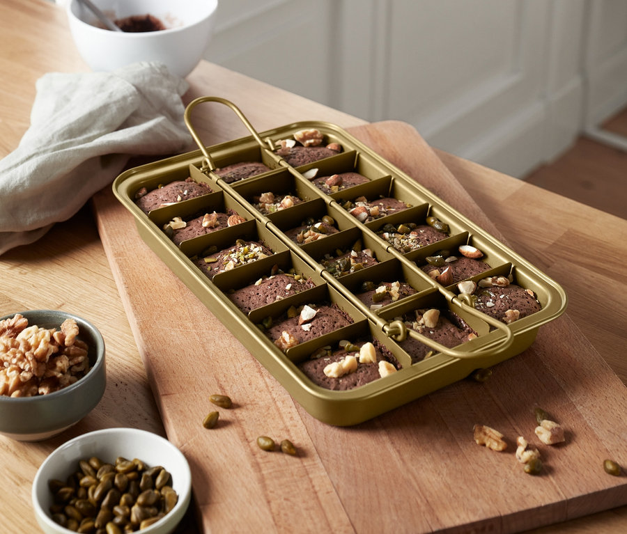 • Backform mit herausnehmbarem Trenner für 18 gleichmäßige Teile