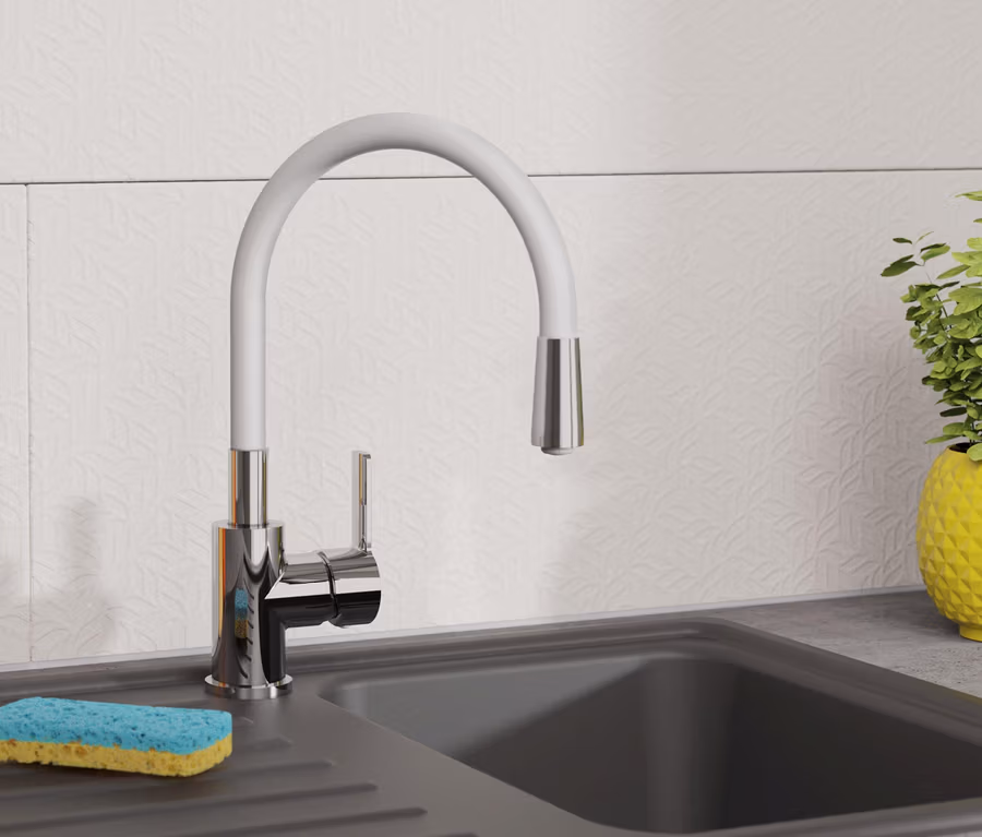 Mit diesem modernen Einhebelmischer bekommt die Spüle in der Küche einen echten Eyecatcher, der darüber hinaus auch noch mit Bedienkomfort und Flexibilität glänzen kann: Der Soft-Touch-Auslauf ist in alle Richtungen biegsam und der flexible Auslauf hat einen erweiterten Aktionsradius mit 360°-Schwenkbereich.