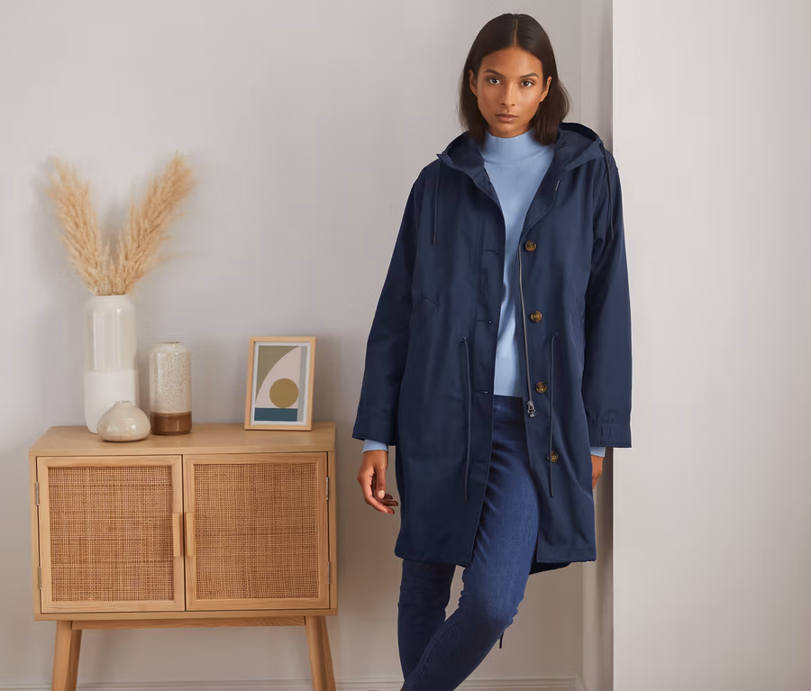 - Vorderseite mit Reißverschluss und zusätzlicher Windschutzleiste mit Knöpfen