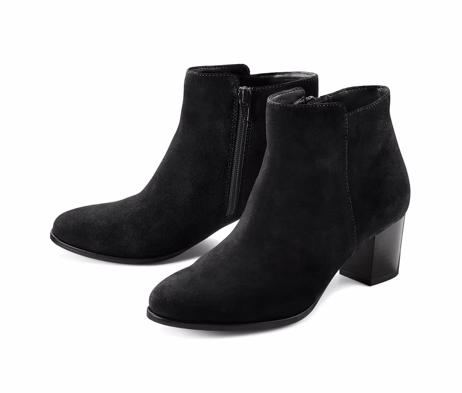 Diese Boots aus hochwertigem, weichem und chromfrei gegerbtem Veloursleder haben einen coolen Look, der zu fast jedem Outfit passt. Die Schuhe haben einen etwa sechs Zentimeter hohen Absatz und einen seitlichen Reißverschluss, der das Anziehen erleichtert.