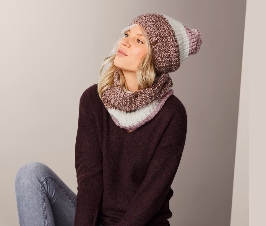 - Damenmütze aus weichem Grobstrick