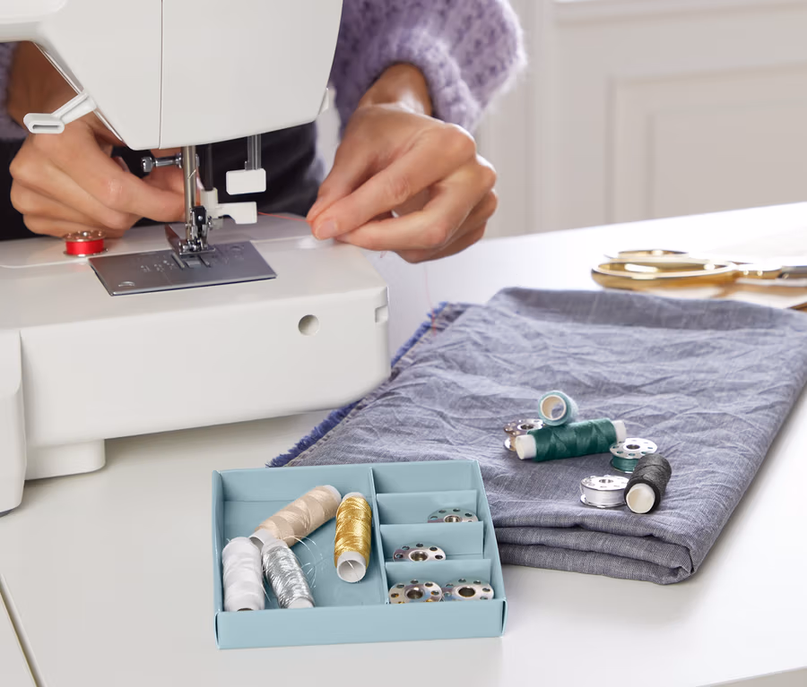- 8 Garnrollen mit farblich passender Unterfadenspule für das Nähen zu Hause