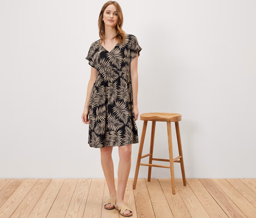 Schwarz mit beigefarbenem Palmenblätter-Alloverprint