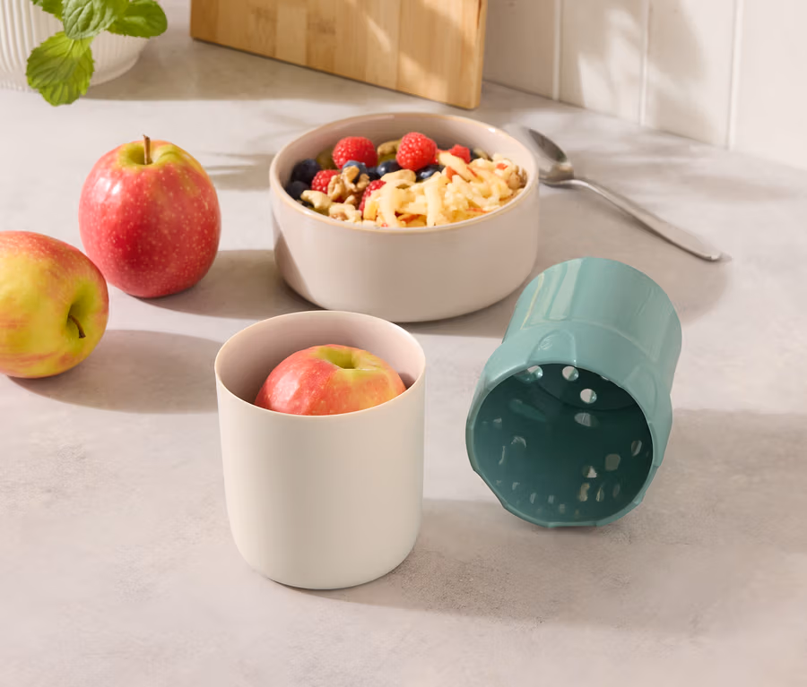 - Zum sicheren und sauberen Reiben von Äpfeln im Handumdrehen