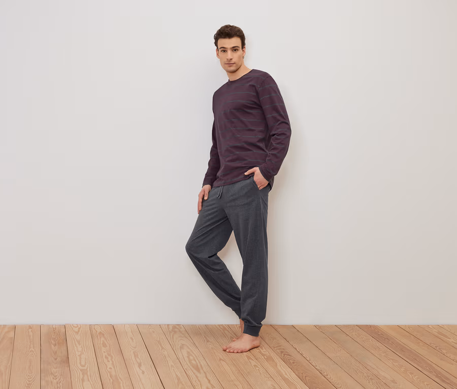 • Herren-Schlafanzug aus reiner Baumwolle in weicher Single-Jersey-Qualität