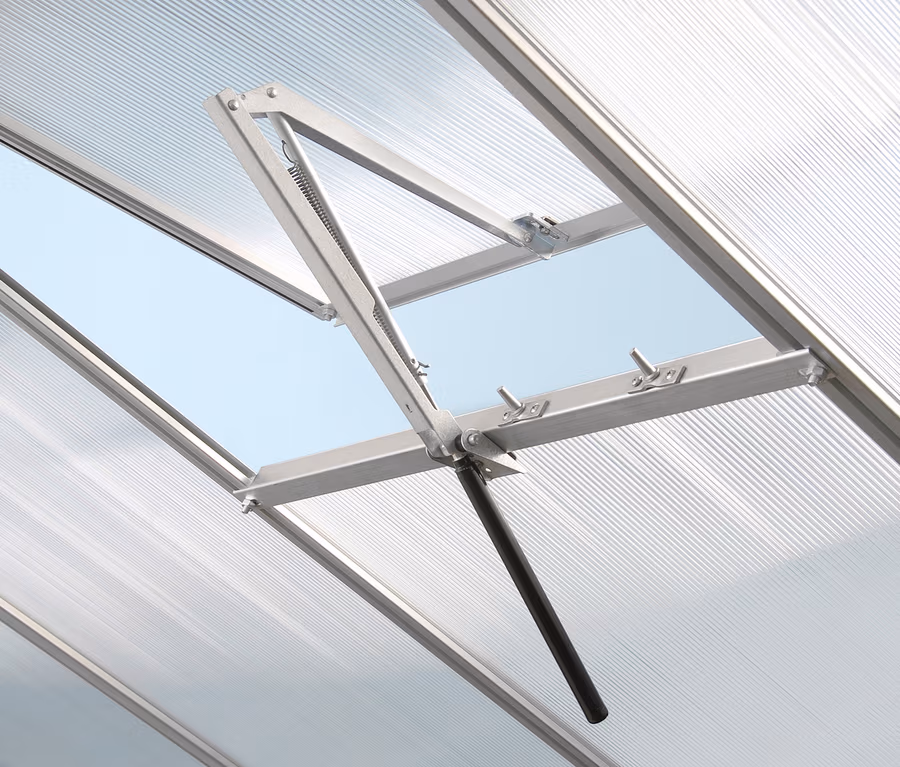 • Einfach ohne Bohrung in das Gewächshausfenster einsetzbar