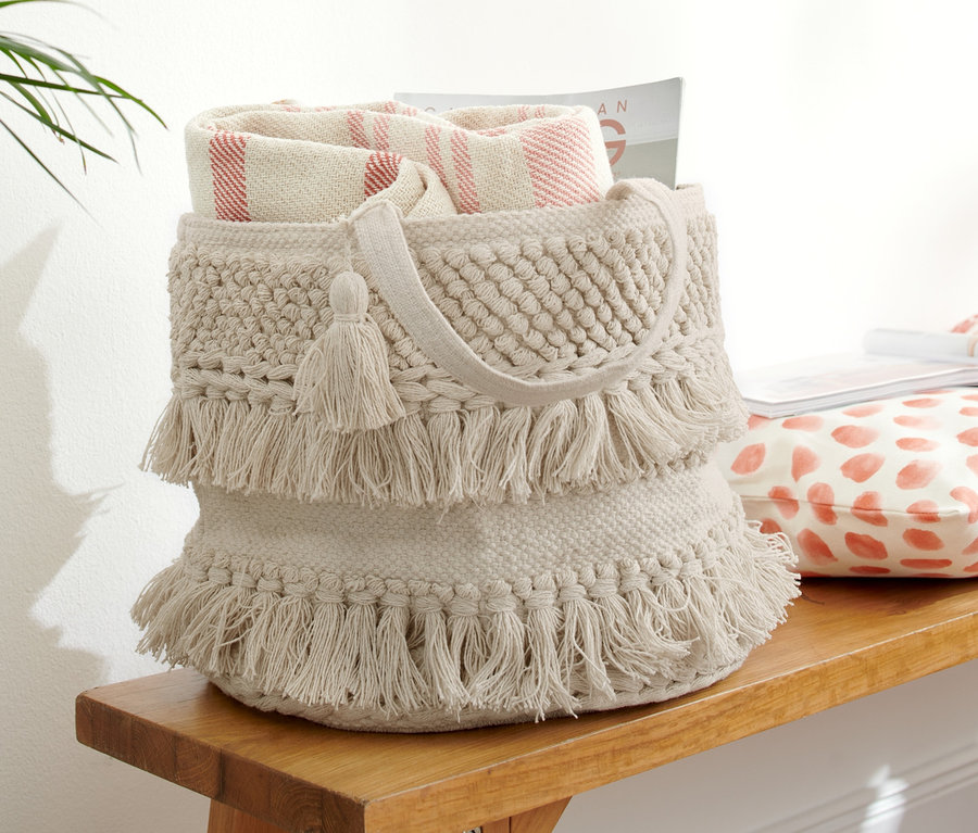- Geflochtener Korb mit dekorativen Fransen