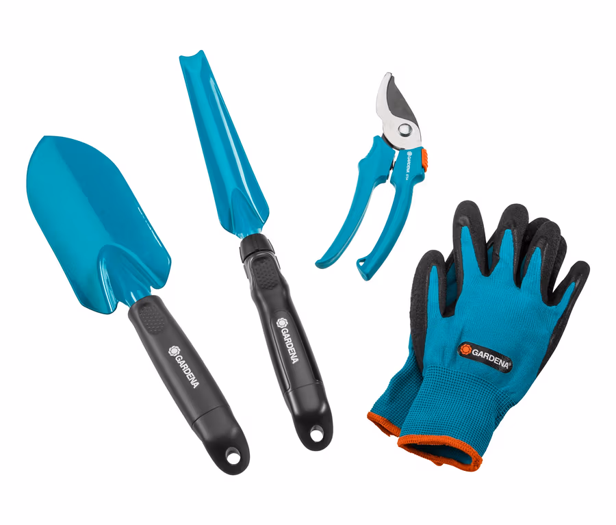 - Inkl. GARDENA Classic »Blumenkelle«, GARDENA »Unkrautstecher«, GARDENA Classic »Gartenschere« und GARDENA »Garten- und Bodenhandschuhe«