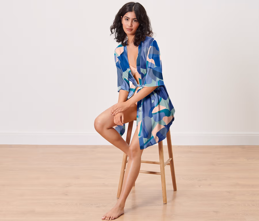 - Dieser Morgenmantel beinhaltet Fasern aus nachhaltigem Holz.