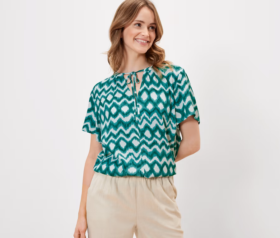 - Diese Tunika-Bluse beinhaltet Fasern aus nachhaltigem Holz.