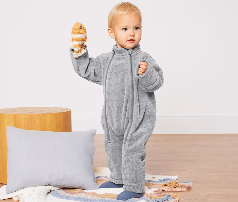- Gr. 50/56 – 74/80: Bein- und Armabschluss mit Umschlag gegen kalte Füße und Hände