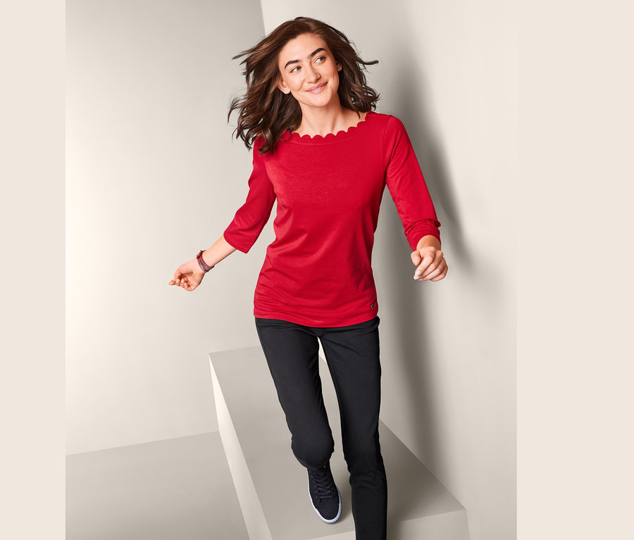 - Damenshirt mit U-Boot-Ausschnitt mit dekorativer Wellenkante