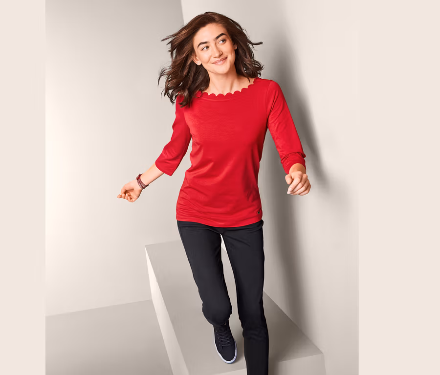 • Damenshirt mit U-Boot-Ausschnitt mit dekorativer Wellenkante