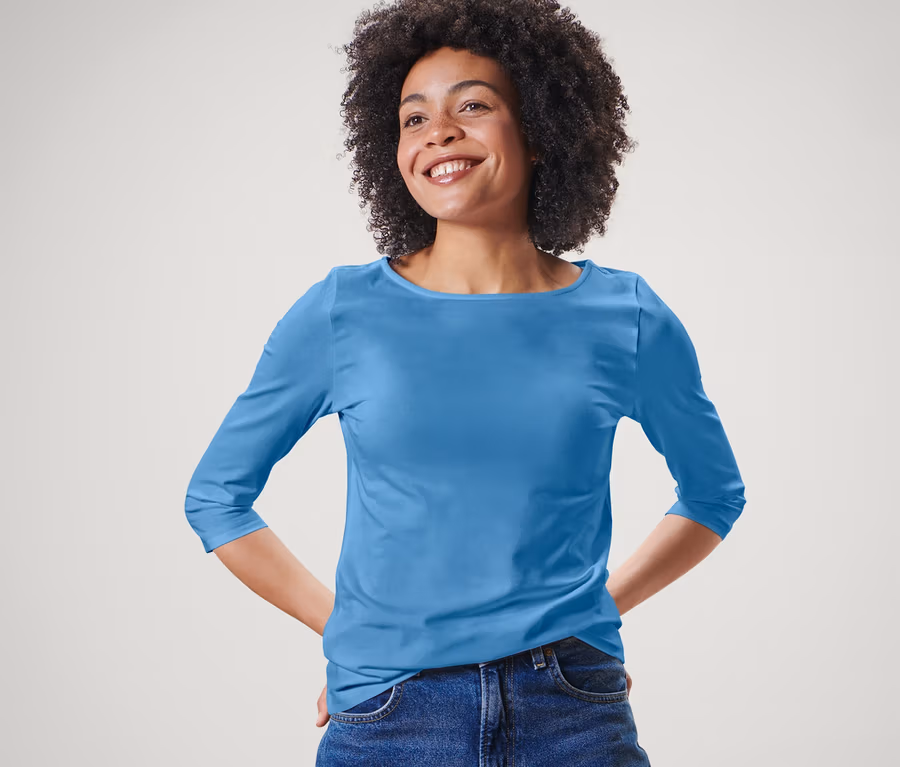 Shirt mit 3/4-Arm, hellblau