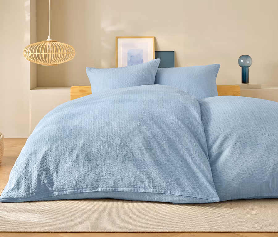 Seersucker-Bettwäsche, hellblau, Normalgröße