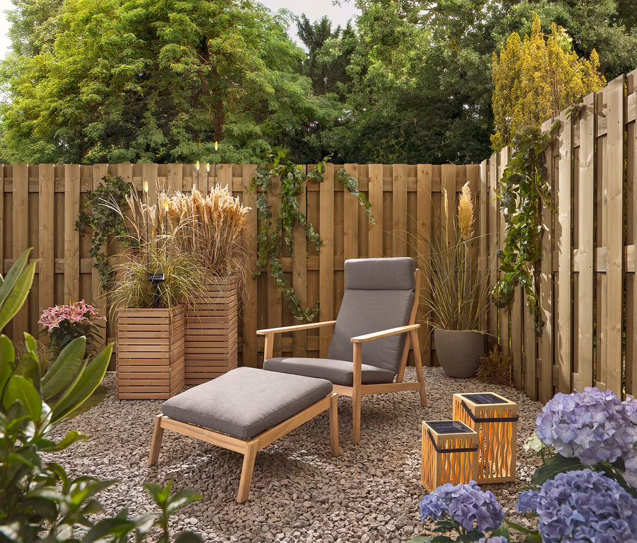 Komfortabler Gartensessel mit hoher Rückenlehne inkl. Fußlehne